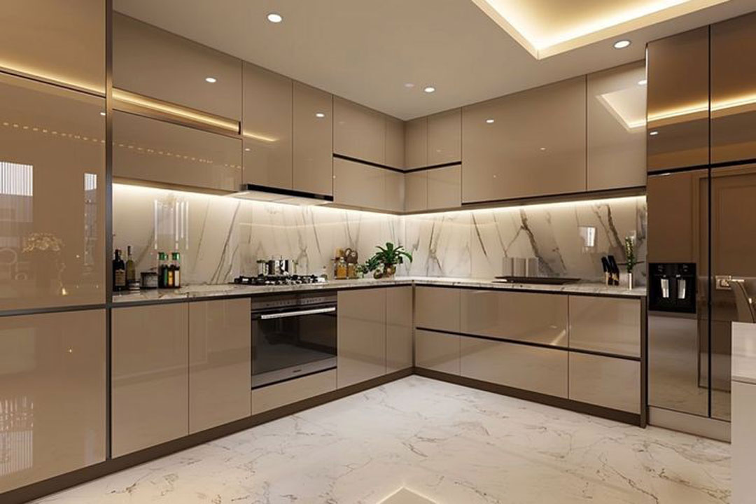 کابینتها، صفحات کانتر، شیرآلات، کفپوش و یراقآلات با دقت و باکیفیت انتخاب میشوند تا دوام و زیبایی فضا تضمین شود.
